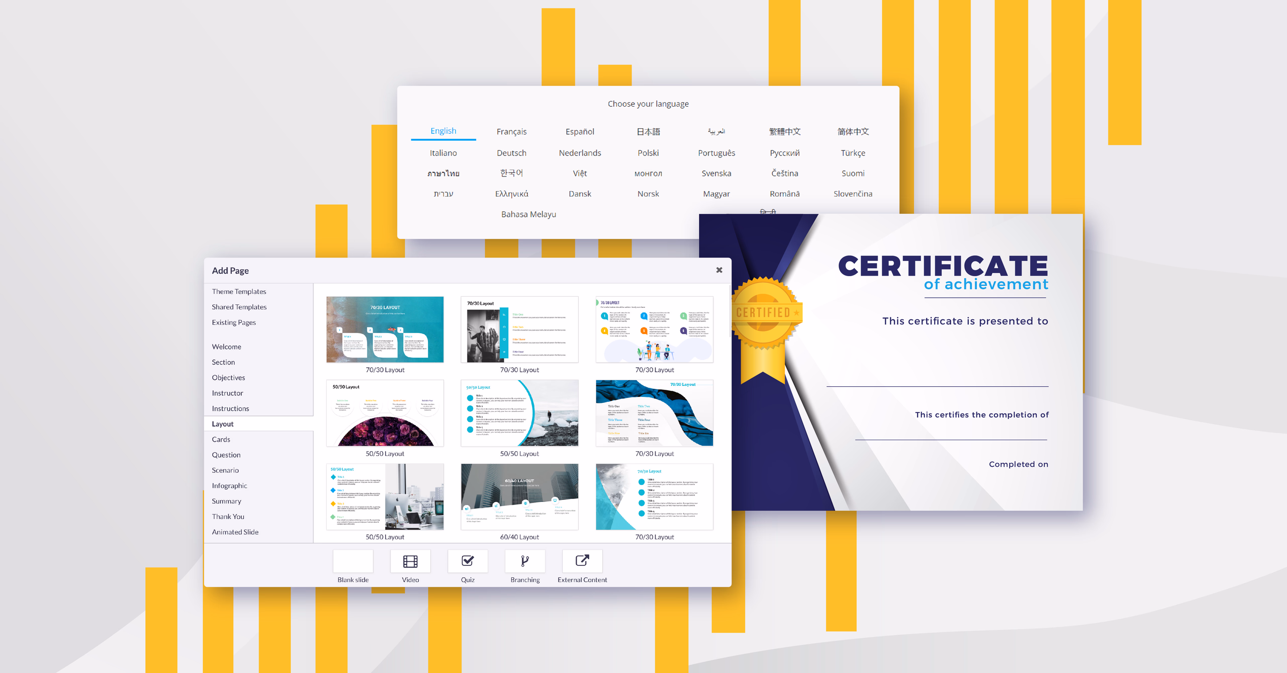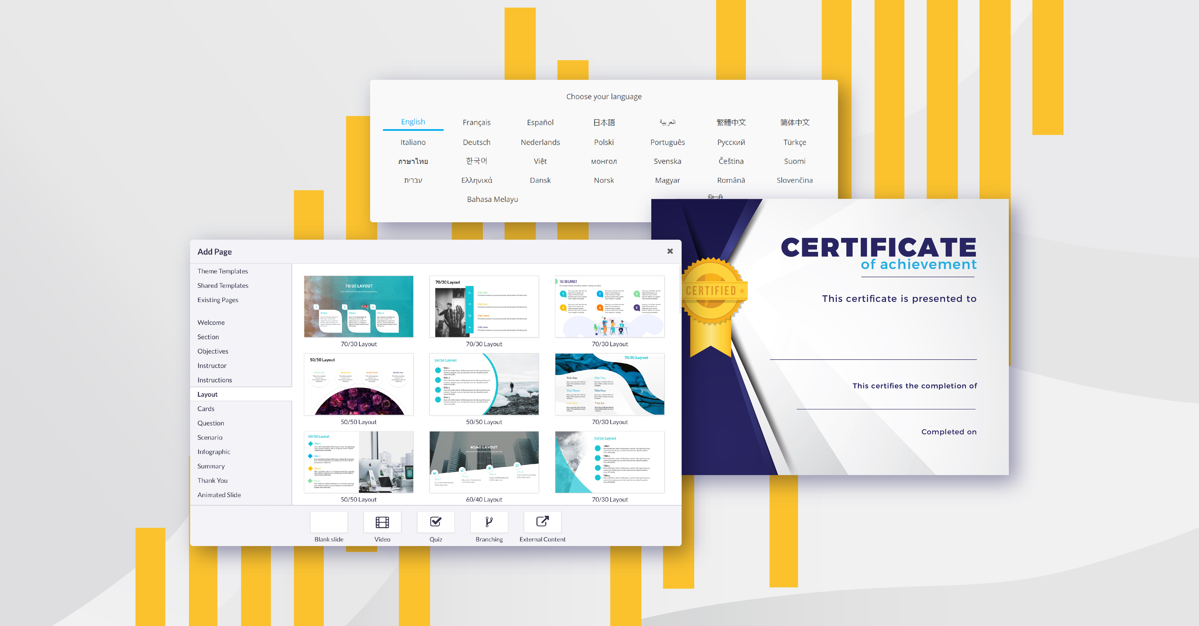 A fully integrated course authoring tool helps learning and development managers quickly produce and develop learning content and online resources to keep pace with organizational needs and changes as they come. Not only does this ensure that content can be easily modified in-house, it also reduces costs by eliminating the need for additional tools to create content.