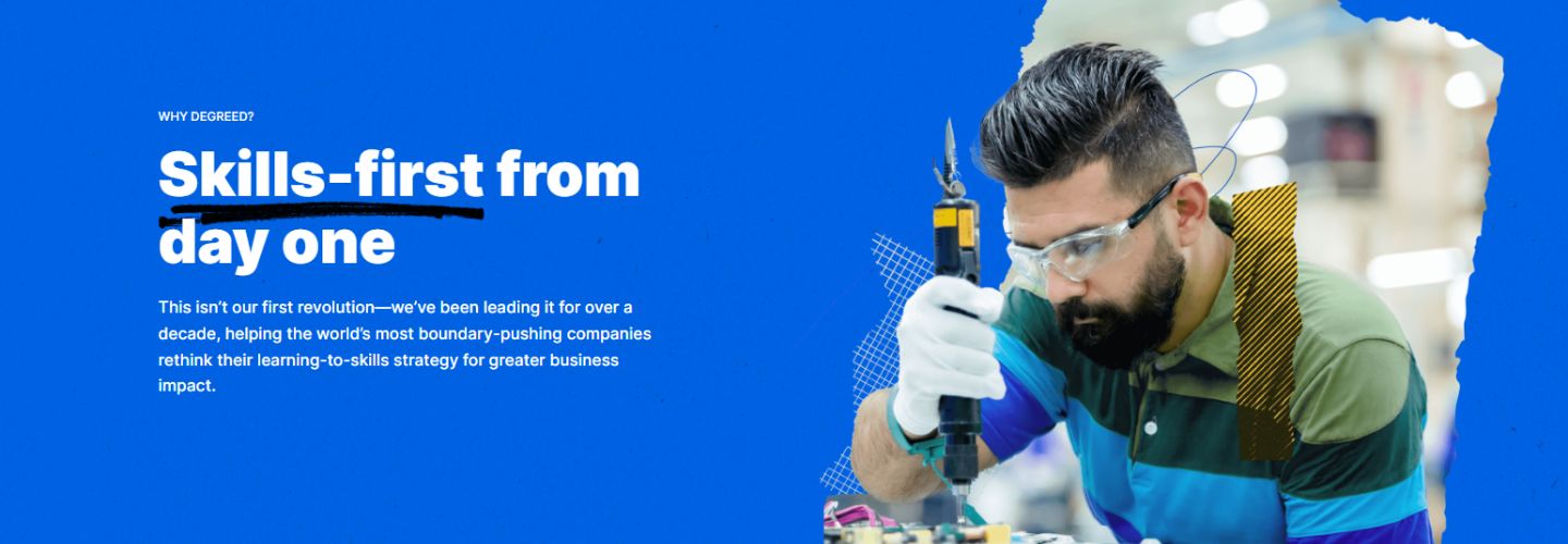 Degreed uses its AI engine, Degreed Maestro, to offer personalized coaching through text and voice, assisting users in skill assessments, career development, and leadership training.