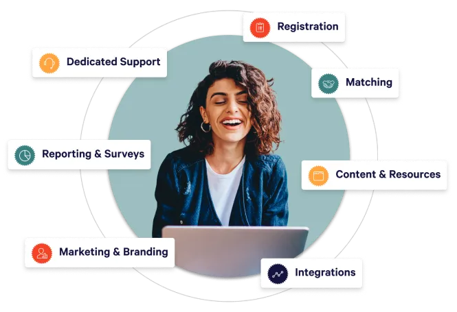 Tailored match types - Support for traditional mentorship, peer mentoring, groups, reverse, and random matching